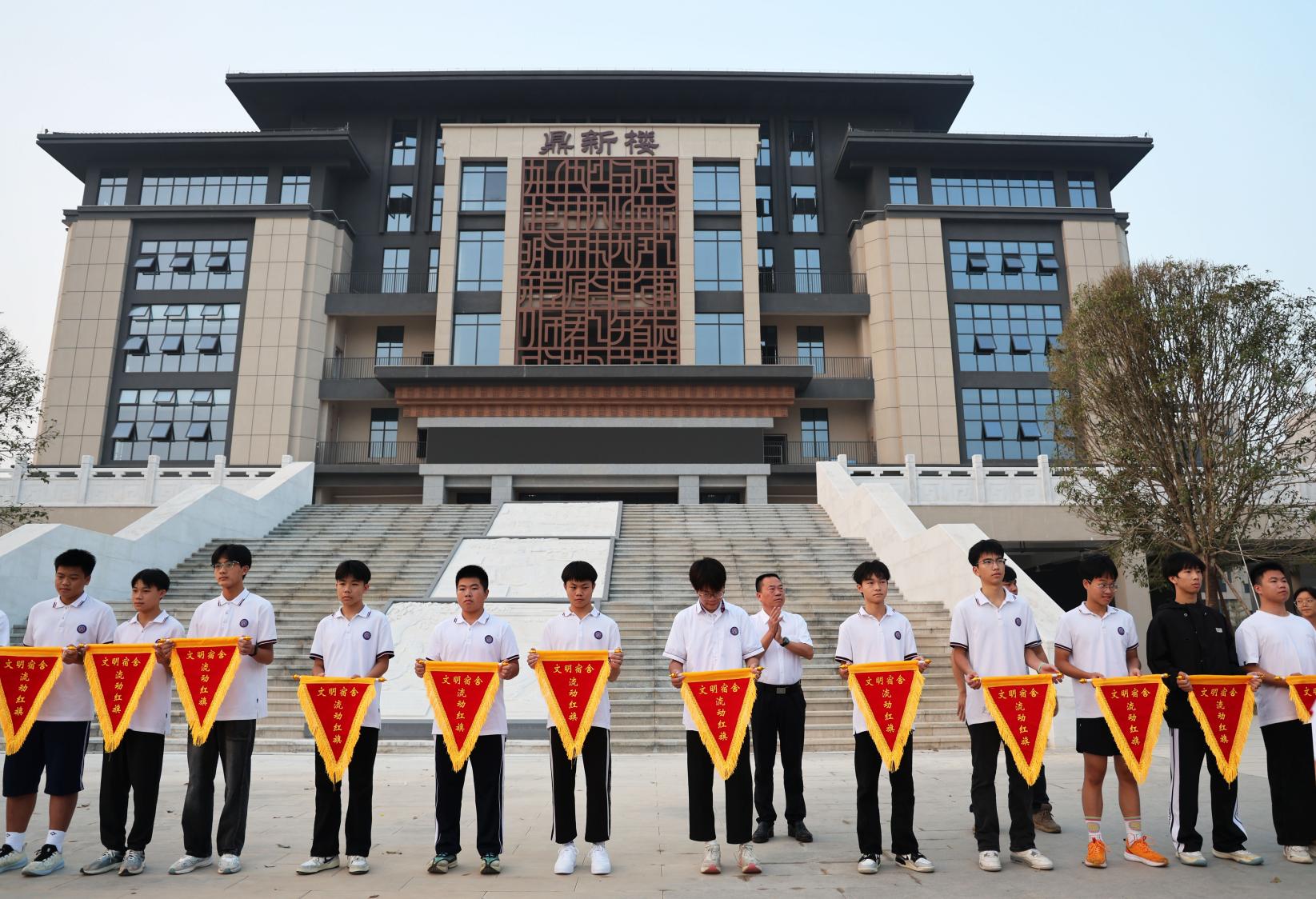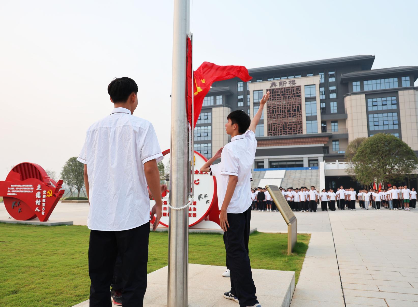 鼎盛高中举行升旗仪式暨月度优秀表彰会鼎盛高中举行升旗仪式暨月度优秀表彰会 10月14日,当清晨的第一缕阳光洒满校园的时候,鼎盛高级中学的学生们已经整齐地排列在鼎新楼前,共同迎接升旗仪式的到来。早上6时45分,全体师生怀着激动而自豪的心情注视国旗,随着国歌雄壮激昂的旋律响起,鲜艳的五星红旗缓缓上升,这一刻,每个人的心中都充满了对祖国的热爱和敬仰。 升旗仪式,不仅激发了同学们的爱国热情,也让同学们深刻认识到作为鼎盛学子,更要传承时代的接力棒,努力学习,报效祖国。 升旗仪式结束后,学校还对在9月份各方面表现突出的优秀宿舍和优秀班级进行表彰。这些优秀集体不仅在学习成绩上名列前茅,更在德育、体育、艺术等方面取得了显著成绩。他们的努力和成就为全校师生树立了榜样,激发了大家追求卓越、全面发展的热情。 学生会主席吕同学宣读9月份获奖名单 获得贵港市鼎盛高级中学9月份慧馨楼文明宿舍共计12间 蒙海波副校长、吴源主任为获奖宿舍颁发“文明宿舍流动红旗” 获得贵港市鼎盛高级中学9月份勇毅楼文明宿舍共计14间 贺欣荣副校长、贺昌林副校长为获奖宿舍颁发“文明宿舍流动红旗” 获得9月份“班级管理优胜奖”的班级分别是高一(1)班&班主任宋伟老师;高三(1)班&班主任彭斌尧老师;高一(3)班&班主任韦晓晴老师;高一(6)班&班主任袁娥老师。 冯杨校长为获奖班级颁发“文明班级流动红旗” 日常生活中,同学们以身作则,从身边做起,从小事做起,积极参与到文明班级创建中来,人人为学校代言,争做文明好少年。通过文明行为,班与班之间既开展良性竞争,又互相监督;同学与同学之间既比、学、赶、帮,又互相提醒,整个校园呈现出文明和谐的氛围。 来自高一(1)班的李同学代表学生发言,她说:崭新美丽、整洁文明的校园为我们提供一个舒心并且高效的学习环境,在过去的9月份,同学们的行为规范进步较大,但还有一些需要改进的地方。她倡议同学们“关爱同学,尊师重道,遵纪守规”,让我们从点滴做起,共同努力,用实际行动创造一个更加美好的明天!